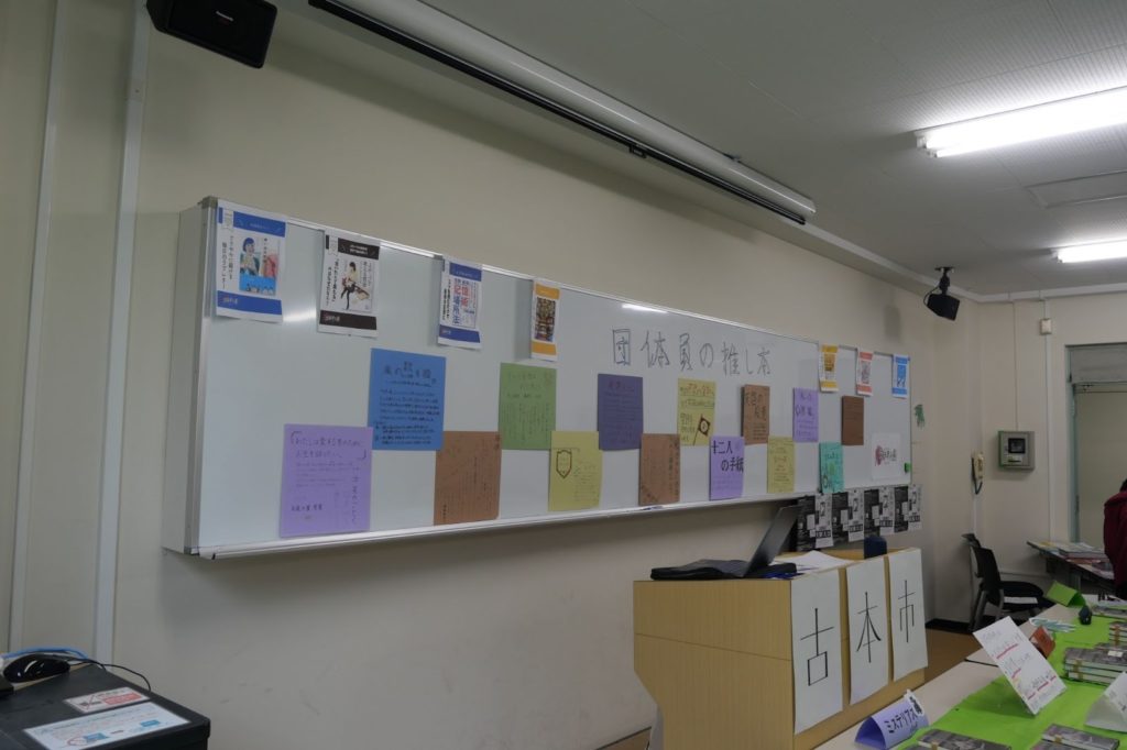 教室前面のホワイトボード一面にズラリと並んだのは、団体員たちの「推し本」を紹介した手作りPOPたち。